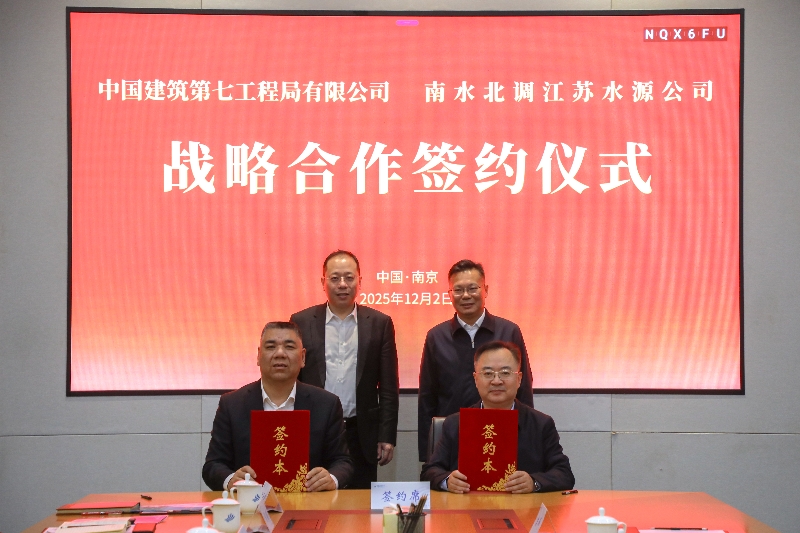 12月2日,南水北調(diào)江蘇水源公司與中國建筑第七工程局有限公司(以下簡稱“中建七局”)在寧開展座談交流并簽署戰(zhàn)略合作協(xié)議。江蘇水源公司黨委書記、董事長袁連沖,中建七局黨委常委、副總經(jīng)理、北方分局局長王少哲出席簽約儀式并見證簽約。江蘇水源公司黨委委員、副總經(jīng)理侯勇,中建七局二公司黨委副書記、總經(jīng)理于亞臣代表簽約。