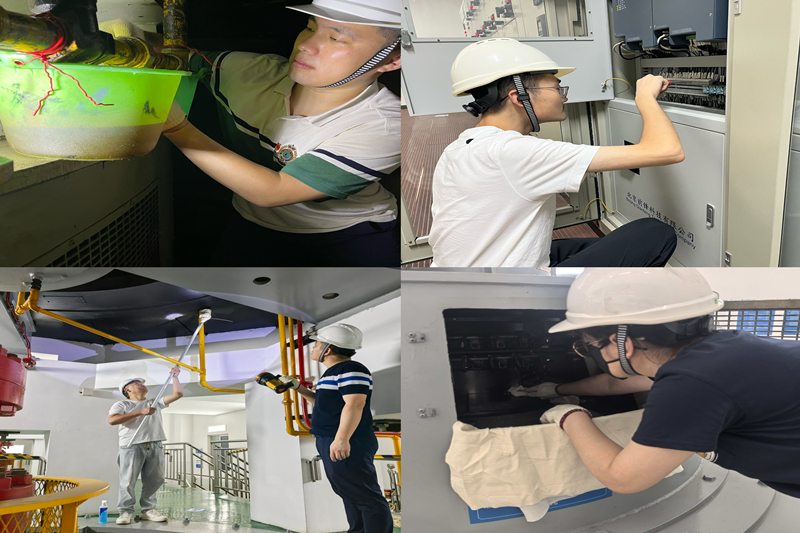 停機(jī)指令下達(dá)后,寶應(yīng)站管理所迅速部署、統(tǒng)籌規(guī)劃,全面推進(jìn)設(shè)備隱患排查、養(yǎng)護(hù)及專項(xiàng)維修等工作。重點(diǎn)針對(duì)主水泵、高低壓電氣柜等核心設(shè)施開(kāi)展“地毯式”檢查,對(duì)排查發(fā)現(xiàn)的設(shè)備標(biāo)識(shí)模糊、應(yīng)急通道指示燈故障等問(wèn)題進(jìn)行立行立改;針對(duì)清污機(jī)設(shè)備老化磨損造成的運(yùn)行期故障,扎實(shí)開(kāi)展清污機(jī)皮帶擋板更換與傳動(dòng)部件潤(rùn)滑油加注等日常保養(yǎng),并及時(shí)制定維修方案上報(bào)專項(xiàng);嚴(yán)格遵循“靶向治理、全面煥新”原則,徹底清除三號(hào)機(jī)坑油污,對(duì)核心設(shè)備端子排逐一排查緊固并補(bǔ)全標(biāo)識(shí),同步完成主機(jī)架底板清洗、葉調(diào)控制柜除塵、主機(jī)碳刷打磨清理等精細(xì)化作業(yè),全方位恢復(fù)設(shè)備最優(yōu)性能,高效筑牢泵站安全運(yùn)行“防火墻”。